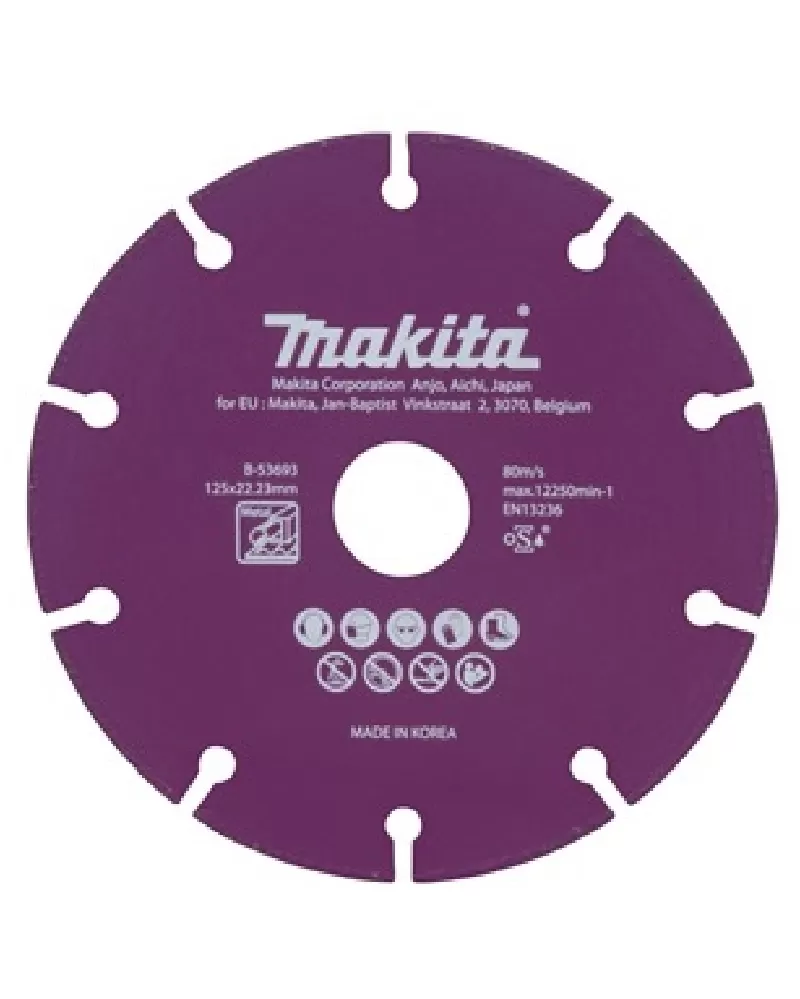 Kotouč řezný diamantový ocel 125x1,3x22,23mm Makita B-53693Speciální segmentový diamantový kotouč pro řezání oceli, ušlechtilé oceli, umělé hmoty a… Celý popis