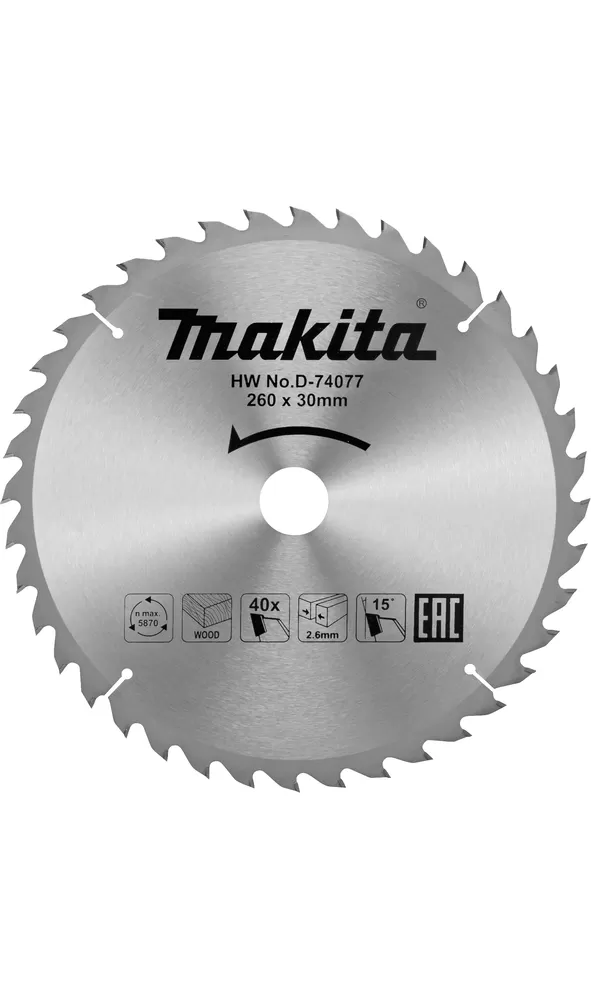 Kotouč pilový dřevo TCT 260x2,6x30mm 40Z pro MLT100 Makita D-74077