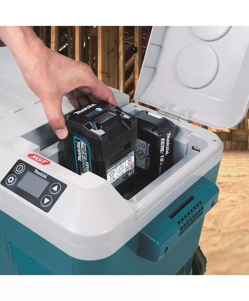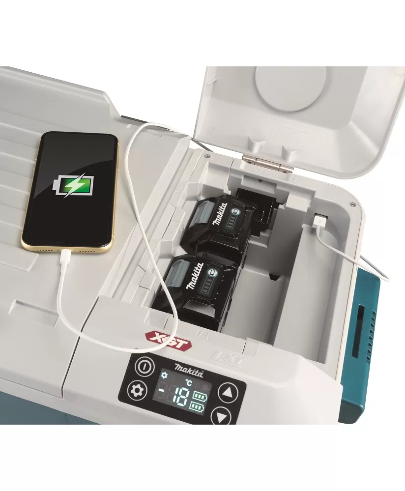 • Šikovný pomocník na cestách fungující na 2 akumulátory Li-ion XGT 40V, na 2 akumulátory Li-ion LXT18V, síťový adaptér nebo autokonektor 12V