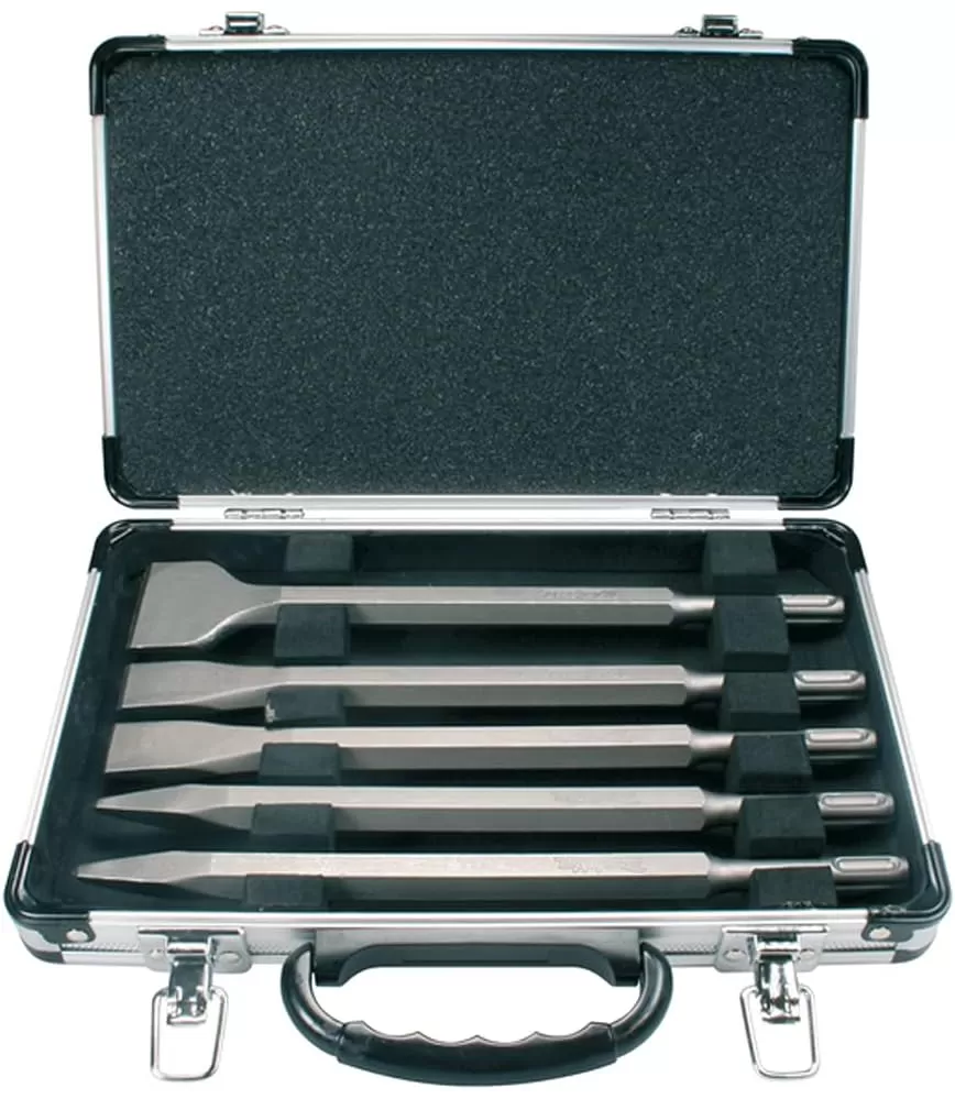 Sada sekáčů 5 ks SDS - plus v hliníkovém kufru (plochý sekáč 250 x 40, 2x plochý sekáč 250 x 20, 2x špičák 250 mm)