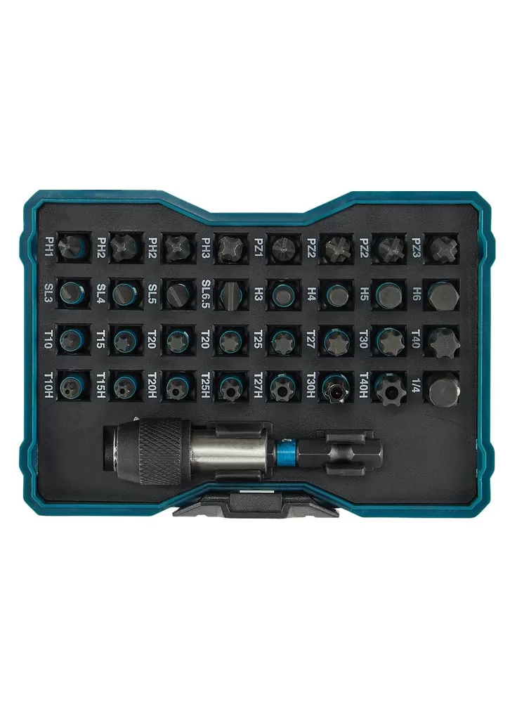 Sada torzních bitů IMPACT BLACK 33 ks, 10 bal. Sada obsahuje: 1x PH1, 2x PH2, 1x PH3, 1x PZ1, 2x PZ2, 1x PZ3, 1x T10, 1x T15, 2x T20, 1x T25, 1x T27, 1x T30, 1x T40, 1x ST10, 1x ST15, 1x ST20, 1x ST25, 1x ST27, 1x ST30, 1x ST40, SL 0.5 x 3 - 1x, SL 0.8 x 4 - 1x, SL 0.8 x 5 - 1x, SL 1.2 x 6.5 - 1x, HEX3 - 1x, HEX4 - 1x, HEX5 - 1x, HEX6 - 1x, 25 mm 1x, 60 mm 1x. Baleno v plastové krabičce.